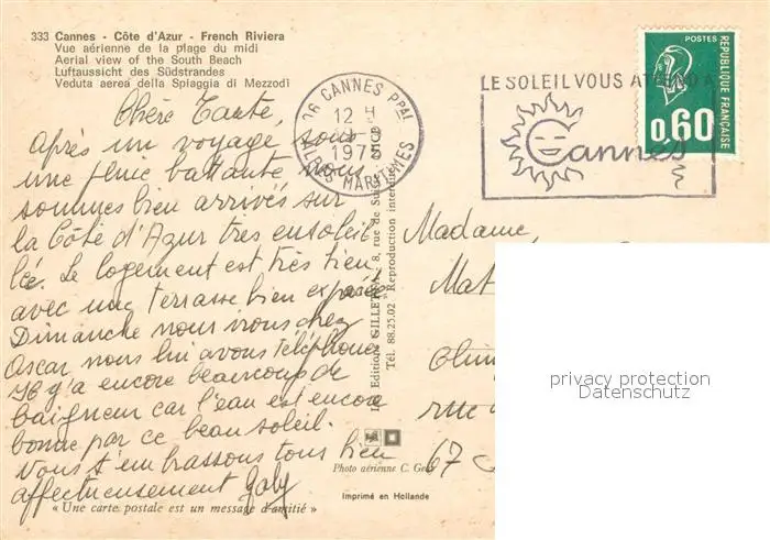 Cannes_Alpes-Maritimes Vue aerienne de la plage du midi Cannes Alpes-Maritimes postalisch gelaufen 1975 Erhaltung siehe scans [WerneD78] WernPID7