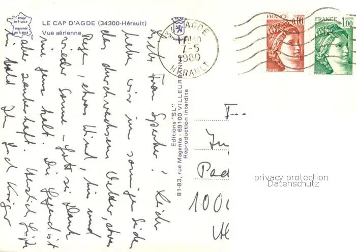 Cap-d_Agde Vue aerienne Cap-d_Agde postalisch gelaufen 1980 Erhaltung siehe scans [WerneD78] WernPID7