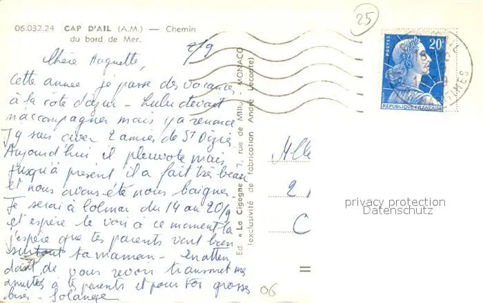 Cap-d_Ail Chemin du bord de Mer Cap-d_Ail postalisch gelaufen 1959 Erhaltung siehe scans [FriedD77] Frierer