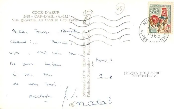 Cap-d_Ail Vue générale au fond Cap Ferrat Cote d'Azur Cap-d_Ail postalisch gelaufen 1965 Erhaltung siehe scans [FriedD77] Frierer