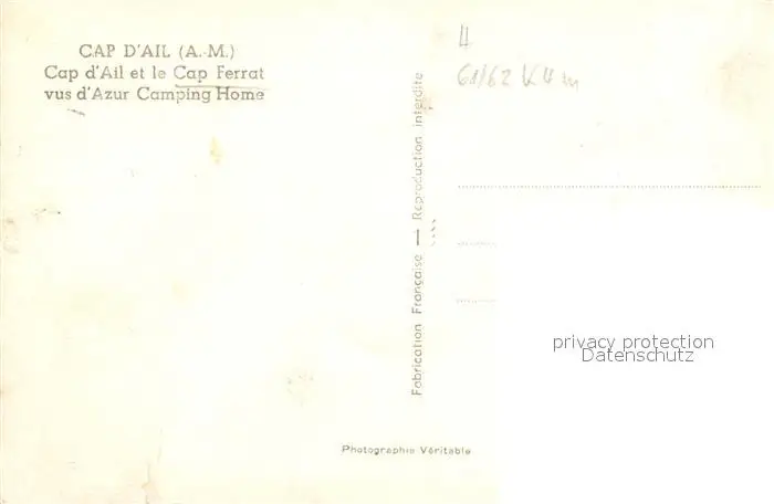 Cap-d_Ail et le Cap Ferrat vus d'Azur Camping Home Cap-d_Ail postalisch nicht gelaufen 1921-1965 Erhaltung siehe scans [FriedD77] Frierer