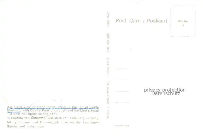 Cape-Town Kaapstad Kapstadt South-Africa RSA Aerial view of Cape Town lying in the lap of Table Mountain postalisch nicht gelaufen Erhaltung siehe scans [WerneD78]