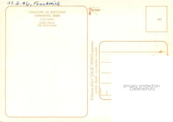 Carantec Ile Callot Plage vue aérienne Carantec postalisch nicht gelaufen 1986 Erhaltung siehe scans [FriedD77] Frierer