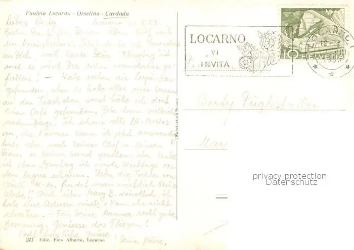 Cardada_Locarno_TI Funivia Locarno Orselina Cardada Bergbahn Lago Maggiore postalisch gelaufen 1953 Erhaltung siehe scans [FriedD77] Frierer