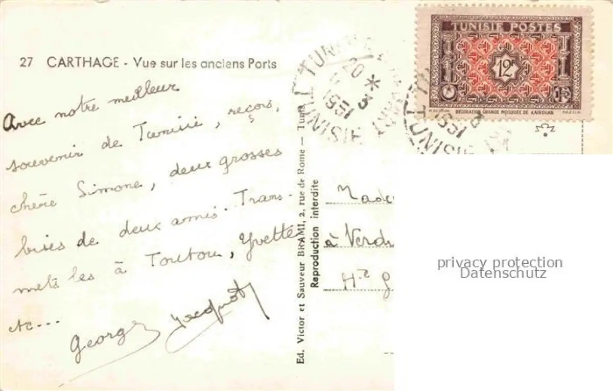 old postcard Carthage Karthago Carthago Tunesie Vue sur les anciens port postalisch gelaufen Erhaltung siehe scans [FriedD77]