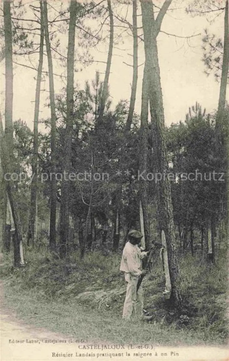 Casteljaloux NERAC 47 Lot-et-Garonne Résinier Landais pratiquant la saignée à un pin postalisch nicht gelaufen Erhaltung siehe scans [FriedD77]