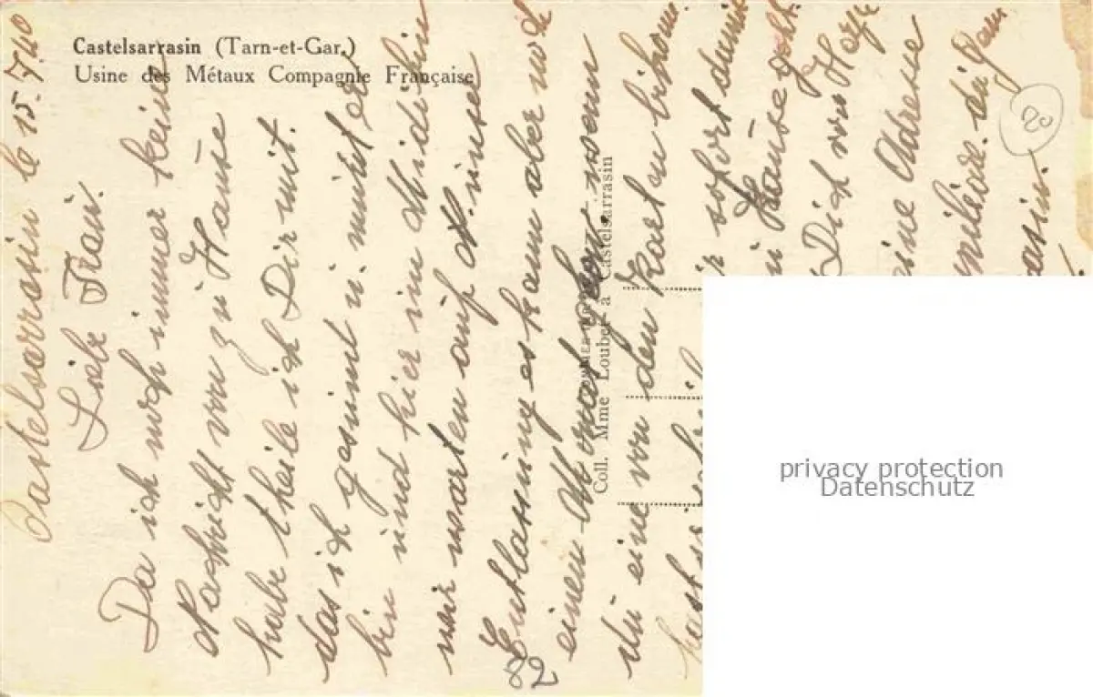 14115904 Castelsarrasin Unse des Métaux Compagnie Francaise postalisch nicht gelaufen Erhaltung siehe scans [FriedD77] Frie Katcode 11170082182033