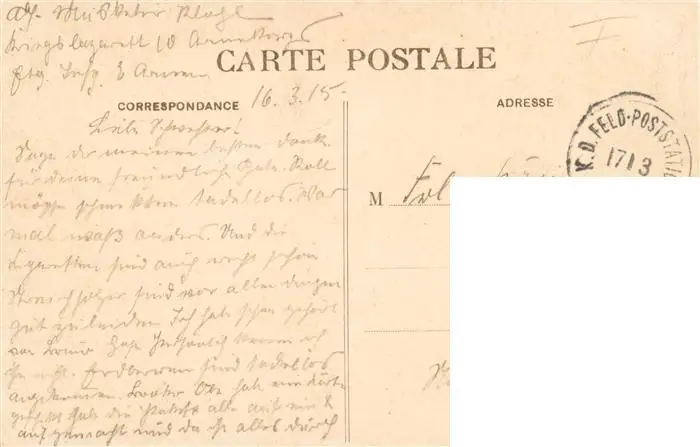 Caudry_59_Nord Rue Centrale postalisch gelaufen 1915 Feldpoststation (Stempel) Erhaltung siehe scans [FriedD77] Feldpoststation (Stempel) Frierer