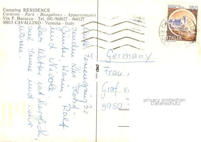 Cavallino_Lecce Camping Residence Strand Cavallino_Lecce postalisch gelaufen nach 1965 Erhaltung siehe scans [LiesaD40] LiesID40