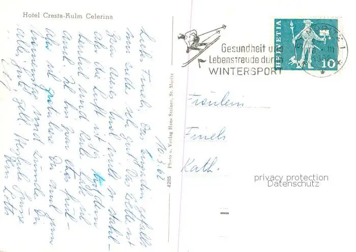 Celerina_GR Hotel Cresta Kulm Celerina_GR postalisch gelaufen 1962 Erhaltung siehe scans [WerneD78] WernPID7