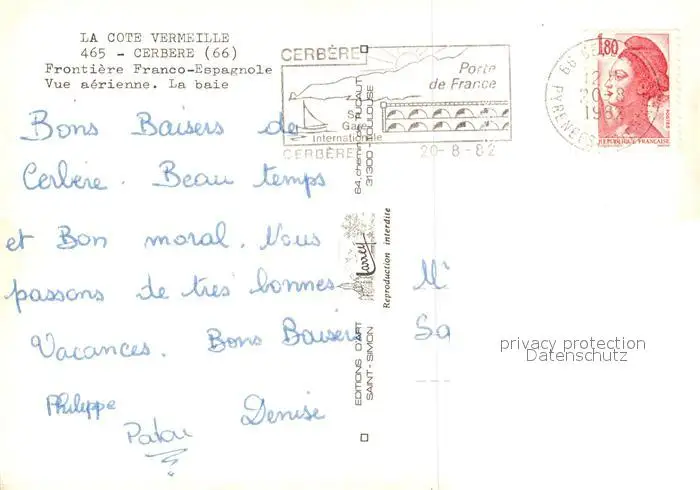 Cerbere Frontière Franco Espagnole Baie vue aérienne Cerbere postalisch gelaufen 1982 Erhaltung siehe scans [FriedD77] Frierer
