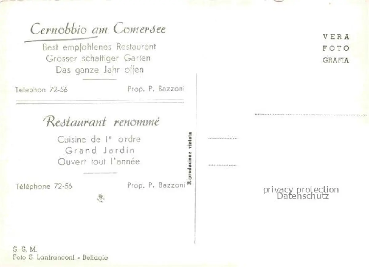 14117617 Cernobbio Lago di Como Lombardia IT Albergo Ristorante Terro Crotto postalisch nicht gelaufen Erhaltung siehe scans [FriedD77] Frie Katcode 11240