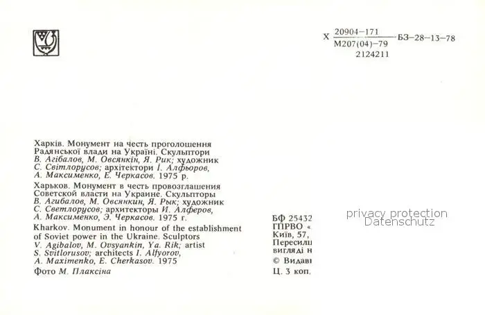 Charkow_Charkiv_Charkiw Denkmal Charkow_Charkiv_Charkiw postalisch nicht gelaufen nach 1965 Keine Postkarte (siehe scan) Erhaltung siehe scans [NatalD47] Keine Postkarte (siehe scan) NataID47