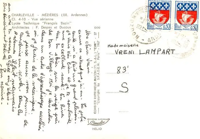 Charleville_-Mezieres_08 Lycée Technique Francois Bazin vue aérienne postalisch gelaufen nach 1965 Fliegeraufnahme Erhaltung siehe scans [FriedD77] Fliegeraufnahme Frierer