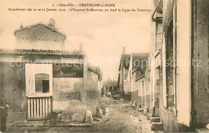 Chatillon-sur-Seine Inondations des Janvier 1910 Impasse St Maurice au fond la Ligne du Tramway Chatillon-sur-Seine postalisch nicht gelaufen bis 1920 Erhaltung siehe scans [WerneD78] WernPID7