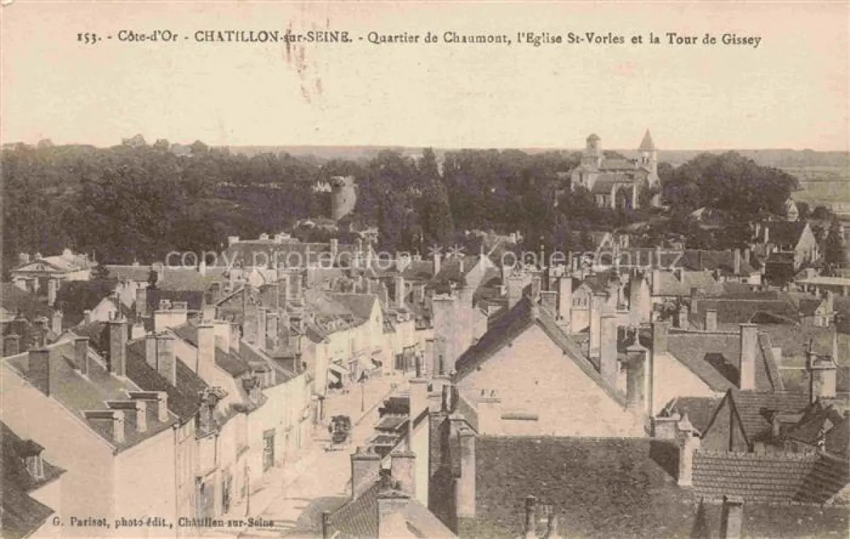 14107514 Chatillon-sur-Seine Montbard 21 Cote-d Or Quartier de Chaumont Eglise St. Vorles et la Tour de Gissey postalisch gelaufen Erhaltung siehe scans [FriedD77] carte postale Frie Katcode 11170021321154