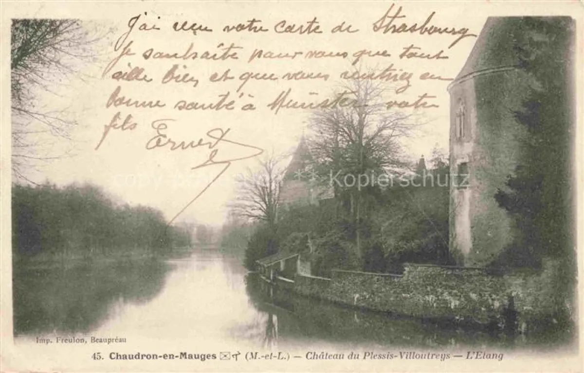14119080 Chaudron-en-Mauges CHOLET 49 Maine-et-Loire Château du Plessis-Villoutreys Etang postalisch gelaufen Erhaltung siehe scans [FriedD77] alte Postkarte Frie Katcode 11170049249083