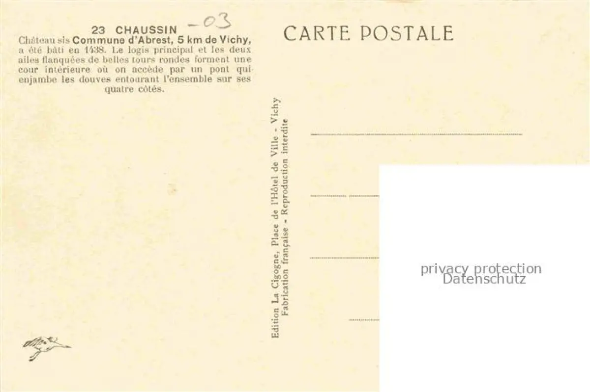 14087328 Chaussin Abrest VICHY 03 Allier Chateau de Chaussin postalisch nicht gelaufen Erhaltung siehe scans [WerneD78] Wern Katcode 11170003303001