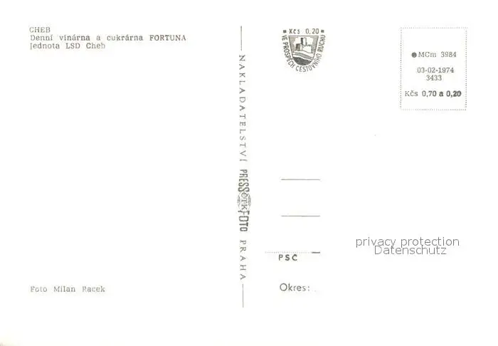 Cheb_Eger Fortuna postalisch nicht gelaufen nach 1965 Erhaltung siehe scans [LiesaD40] LiesID40