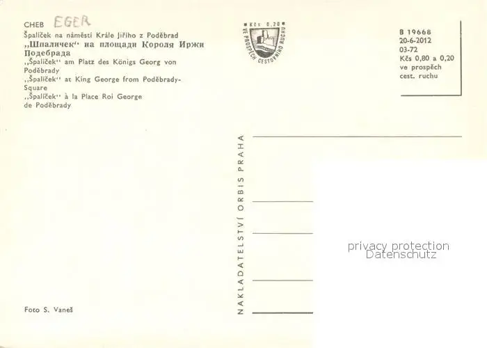 Cheb_Eger Spalicek am Platz des Koenigs Georg von Podebrady postalisch nicht gelaufen nach 1965 Erhaltung siehe scans [FriedD77] Frierer