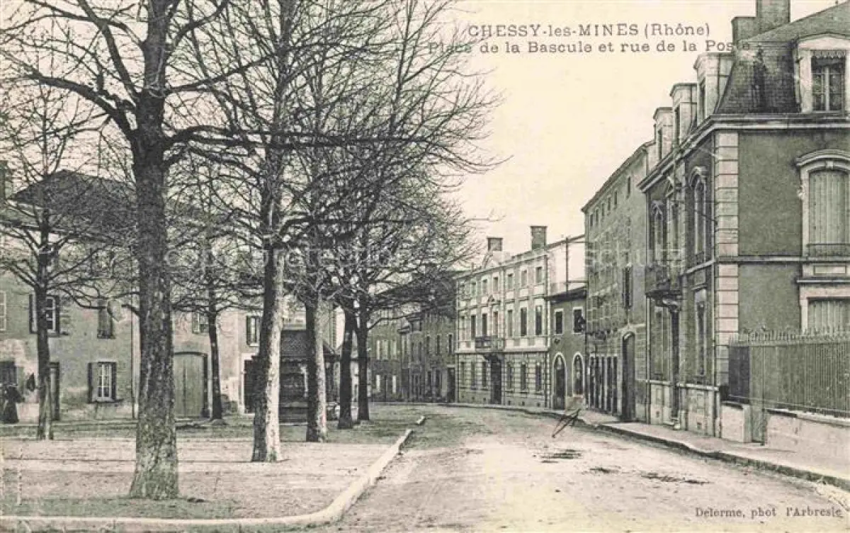 14099705 Chessy-les-Mines Villefranche-sur-Saone 69 Rhone Place de la Bascule et Rue de la Poste postalisch nicht gelaufen Erhaltung siehe scans [FriedD77] Frie Katcode 11170069269056