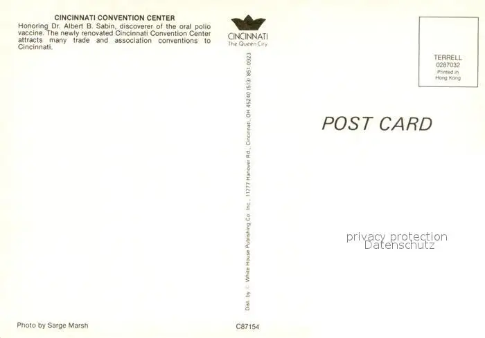 Cincinnati_Ohio Convention Center honoring Dr. Albert B. Sabin Cincinnati Ohio postalisch nicht gelaufen nach 1965 Erhaltung siehe scans [FriedD77] Frierer
