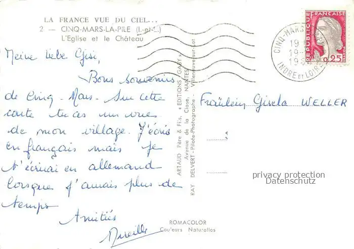 14058671 Cinq-Mars-la-Pile Chinon 37 Indre-et-Loire Eglise Château vue aérienne postalisch gelaufen Fliegeraufnahme Erhaltung siehe scans [FriedD77] Fliegeraufnahme alte Postkarte Frie Katcode 11170037137077