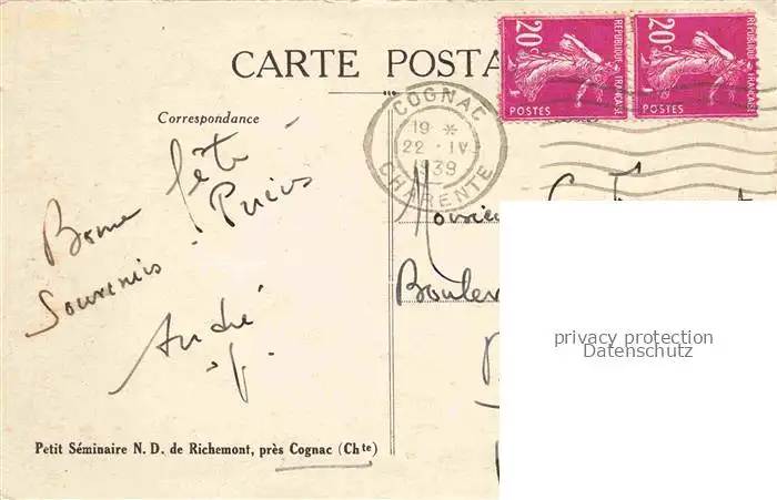 Cognac_16_Charente Petit Seminaire ND de Richemont Vue aerienne postalisch gelaufen 1939 Erhaltung siehe scans [WerneD78] WernPID7
