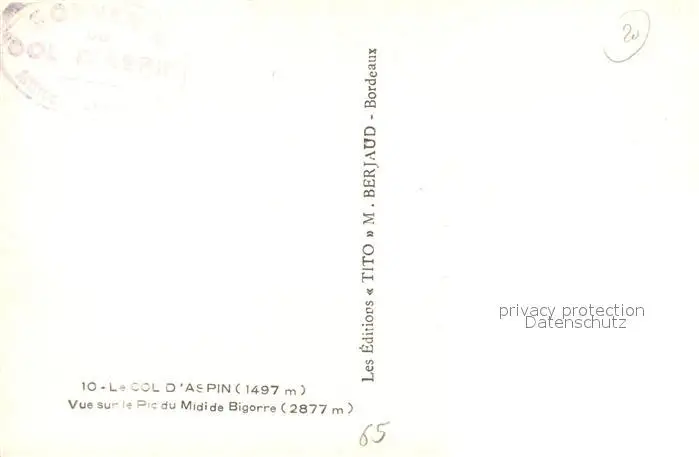 Col_d_Aspin Vue sur le Pic du Midi de Bigorre Pyrénées Col_d_Aspin postalisch nicht gelaufen 1921-1965 Erhaltung siehe scans [FriedD77] Frierer