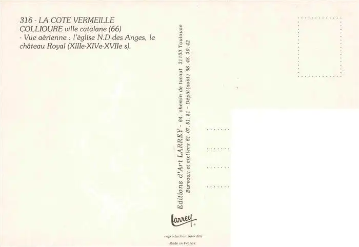 Collioure_66_Pyrenees-Orientales Eglise Notre Dame des Anges Château Royal vue aérienne postalisch nicht gelaufen nach 1965 Fliegeraufnahme Erhaltung siehe scans [FriedD77] Fliegeraufnahme Frierer
