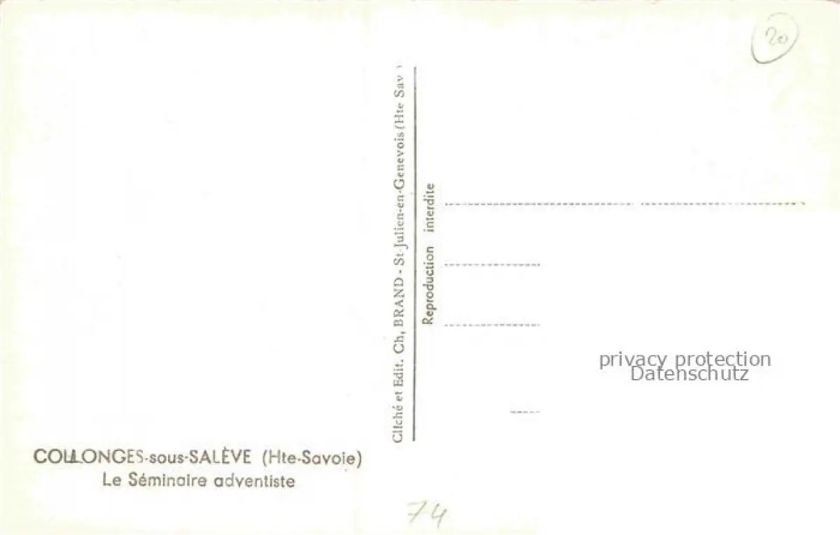 14109121 Collonges-sous-Saleve 74 Haute-Savoie Le Séminaire adventiste postalisch nicht gelaufen Erhaltung siehe scans [FriedD77] Frie Katcode 11170074374082