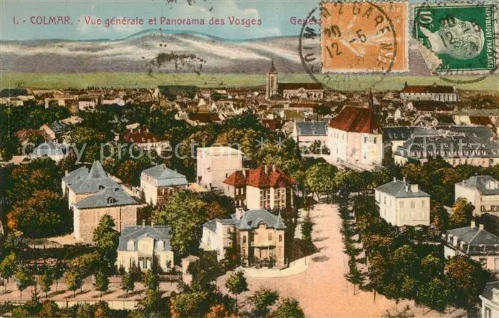 Colmar_Haut_Rhin_Elsass Vue générale et panorama des Vosges Colmar_Haut_Rhin_Elsass postalisch gelaufen 1924 Erhaltung siehe scans [FriedD77] Frierer