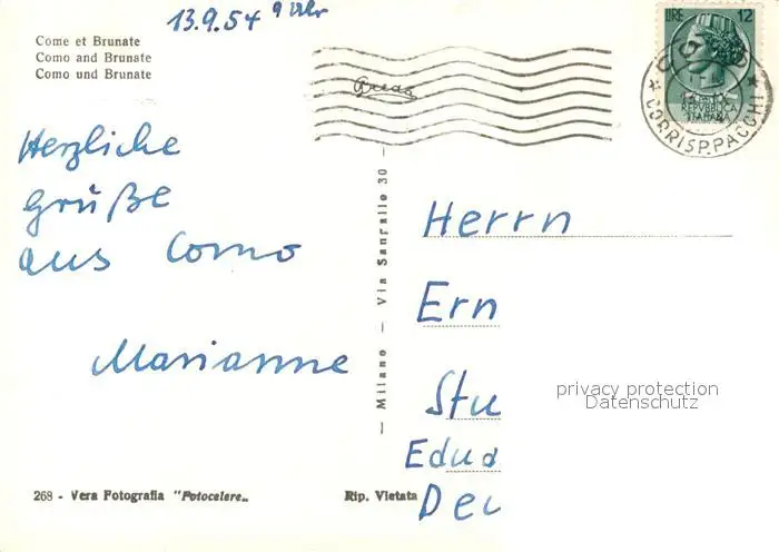 Como_Lago_di_Como e Brunate Como_Lago_di_Como postalisch gelaufen 1954 Erhaltung siehe scans [WerneD78] WernPID7