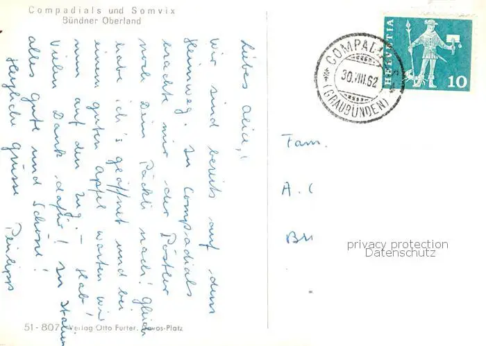 Compadials_Disentis_GR und Somvix Buendner Oberland compadials_Disentis_GR postalisch gelaufen 1962 Erhaltung siehe scans [FriedD77] Frierer
