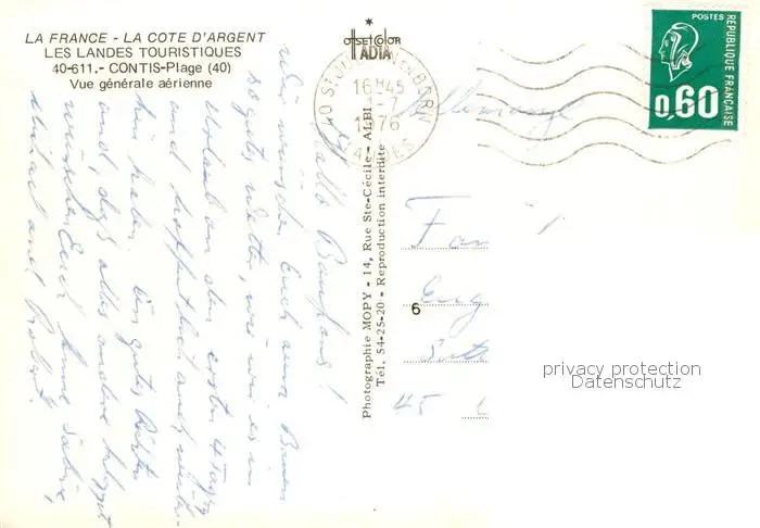 Contis_Plage Vue generale aerienne postalisch gelaufen 1976 Erhaltung siehe scans [WerneD78] WernPID7