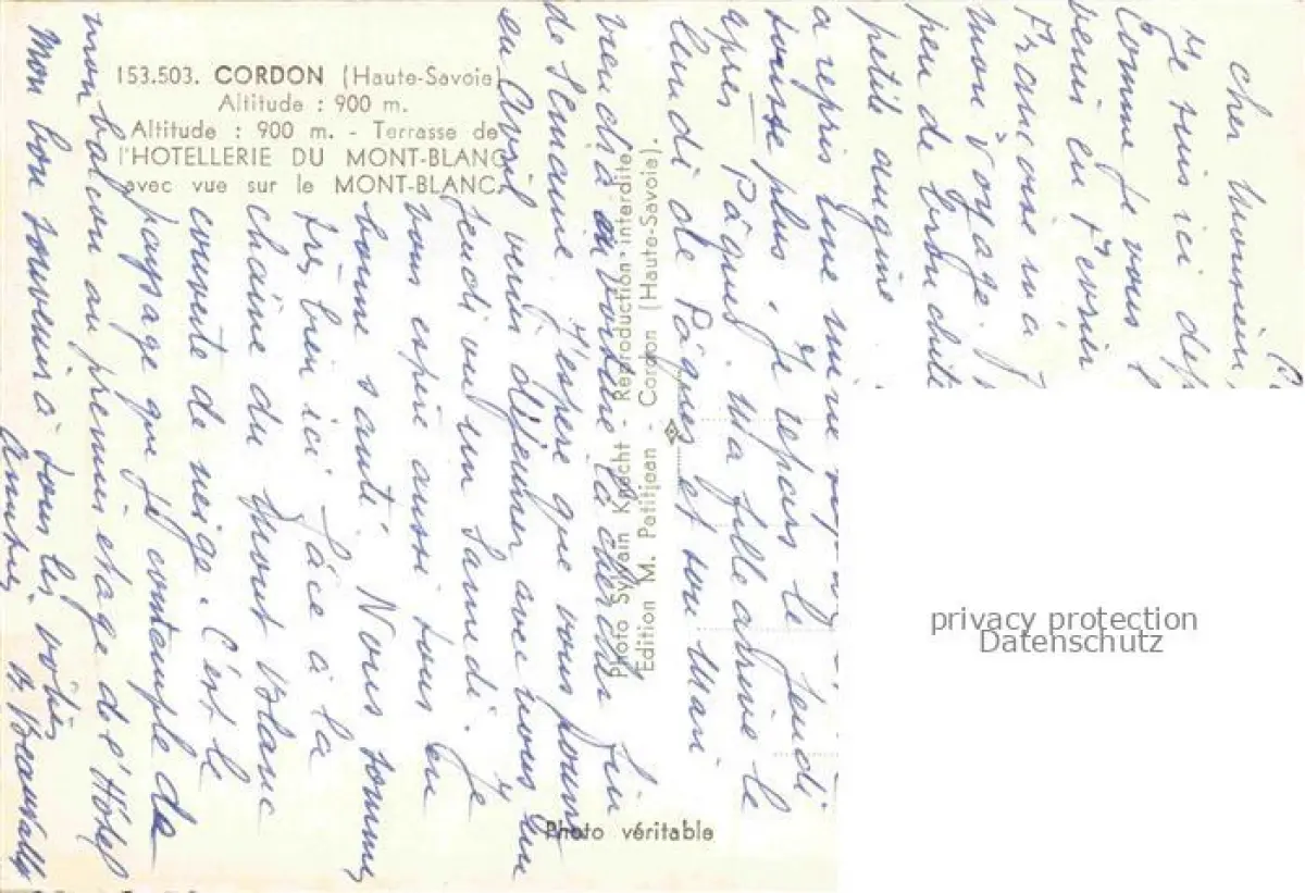 14079564 Cordon Bonneville 74 Haute-Savoie Hotellerie du Mont-Blanc vue sur le Mont Blanc postalisch nicht gelaufen Erhaltung siehe scans [FriedD77] Frie Katcode 11170074274089