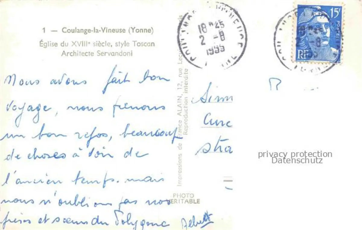 14107346 Coulanges-la-Vineuse Auxerre 89 Yonne Eglise du XVIIIe siècle style Toscan Architecte Servandoni postalisch gelaufen Erhaltung siehe scans [FriedD77] carte postale Frie Katcode 11170089189118