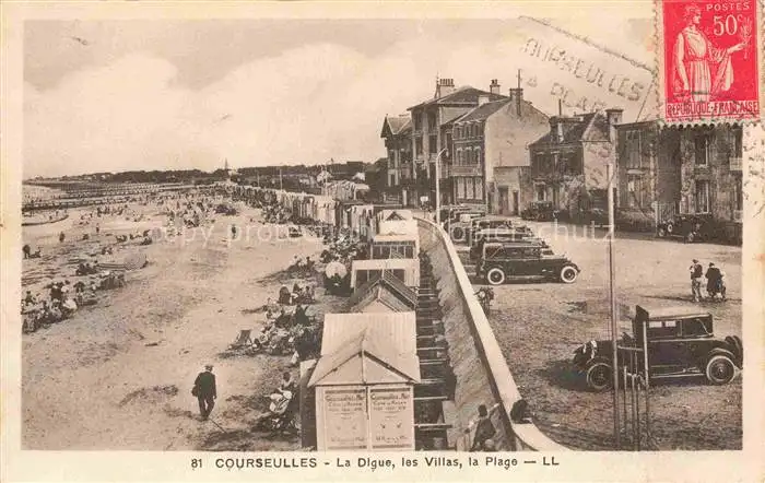 alte Postkarte Courseulles-sur-Mer CAEN 14 Calvados La digue les villas et la plage postalisch gelaufen Erhaltung siehe scans [FriedD77]