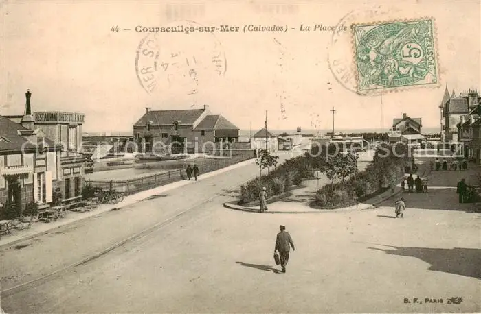 Courseulles-sur-Mer_14_Calvados La Place de Gare postalisch gelaufen bis 1920 Erhaltung siehe scans [FriedD77] Frierer