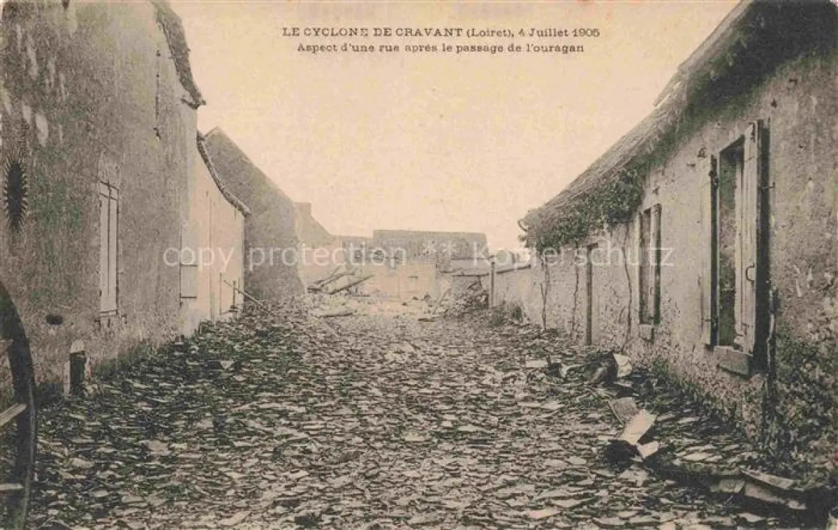 Cravant ORLEANS 45 Loiret Le cyclone de Cravant 4 Juillet 1905 une rue postalisch nicht gelaufen Erhaltung siehe scans [FriedD77]