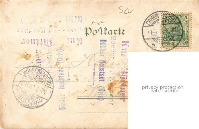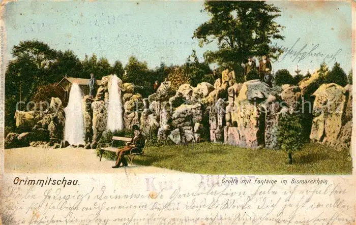 Crimmitschau Grotte Fontaine Bismarckhain Crimmitschau postalisch gelaufen 1902 Erhaltung siehe scans [KathaD81] Kathoren