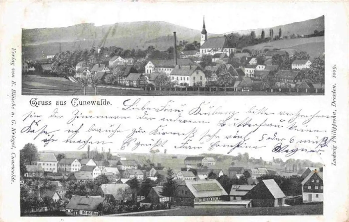 alte Postkarte Cunewalde Bautzen Sachsen Teilansichten Kirche postalisch gelaufen Erhaltung siehe scans [FriedD77]