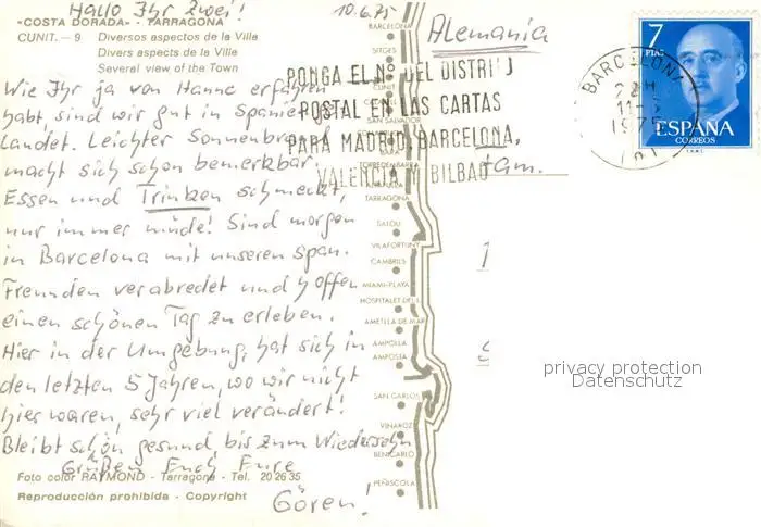 Cunit Diversos aspectos de la ciudad Cunit postalisch gelaufen 1975 Erhaltung siehe scans [FriedD77] Frierer