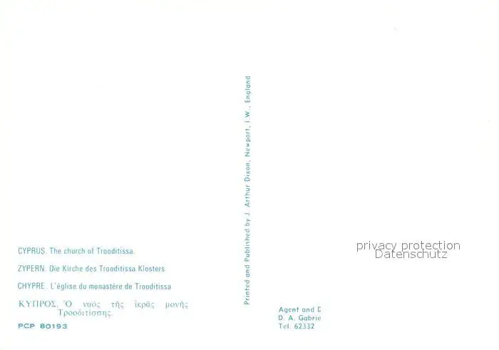 Cyprus_Zypern Trooditisa Church Cyprus Zypern postalisch nicht gelaufen nach 1965 Erhaltung siehe scans [KathaD81] Kathoren