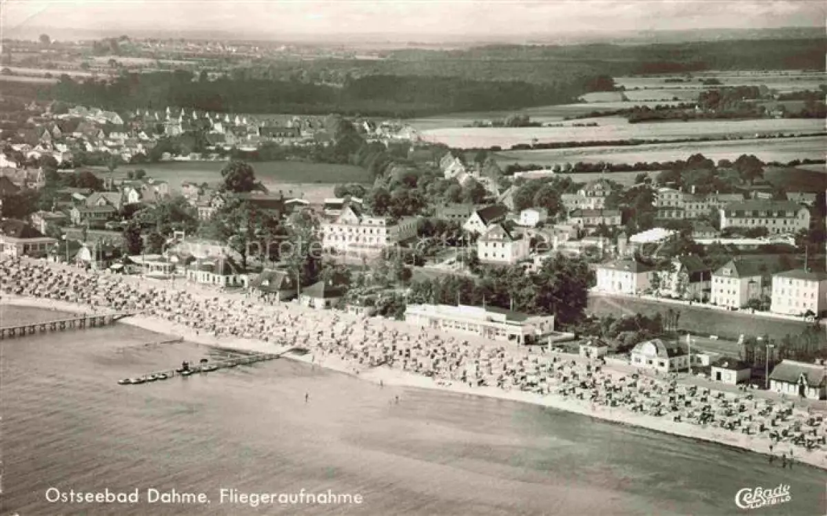 alte Postkarte DAHME Ostseebad Schleswig-Holstein Fliegeraufnahme postalisch gelaufen Erhaltung siehe scans [FriedD77]