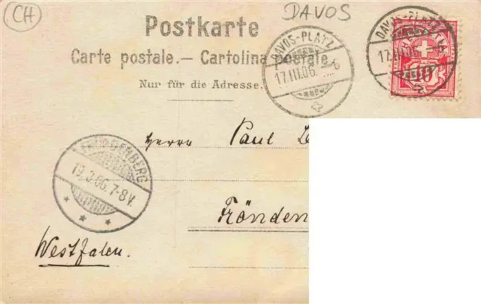 DAVOS_GR Schlittenfahrt Davos_GR postalisch gelaufen 1906 Erhaltung siehe scans [WerneD78] WernPID7