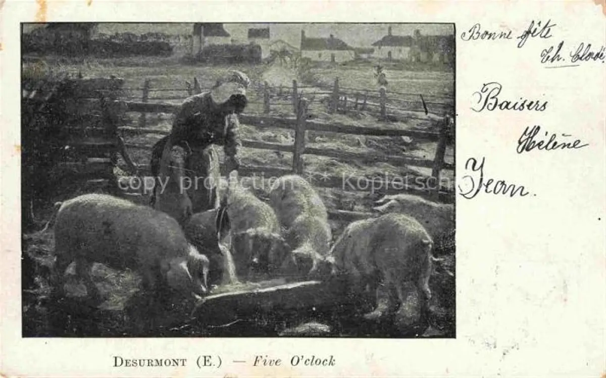 74118223 DESURMONT E. Kuenstlerkarte Five O'clock Schaeferin postalisch gelaufen Erhaltung siehe scans [SanaeD93] alte Postkarte Sana Katcode 22240000003200
