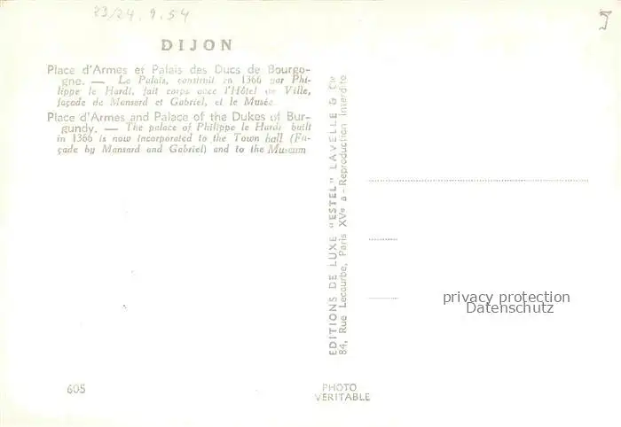 DIJON_21_Cote-d_Or Place d'Armes en Palais des Ducs de Bourgogne postalisch nicht gelaufen 1954 Erhaltung siehe scans [WerneD78] WernPID7