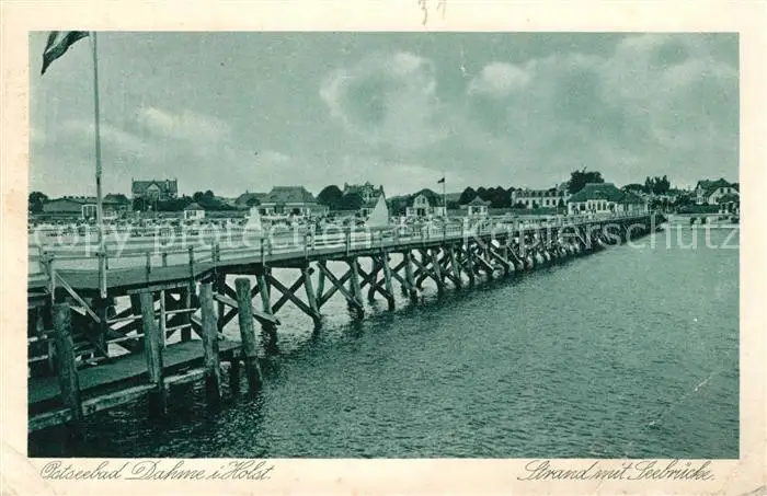 Dahme_Ostseebad_Holstein Strand mit Seebruecke postalisch gelaufen 1928 Erhaltung siehe scans [KathaD81] Kathoren