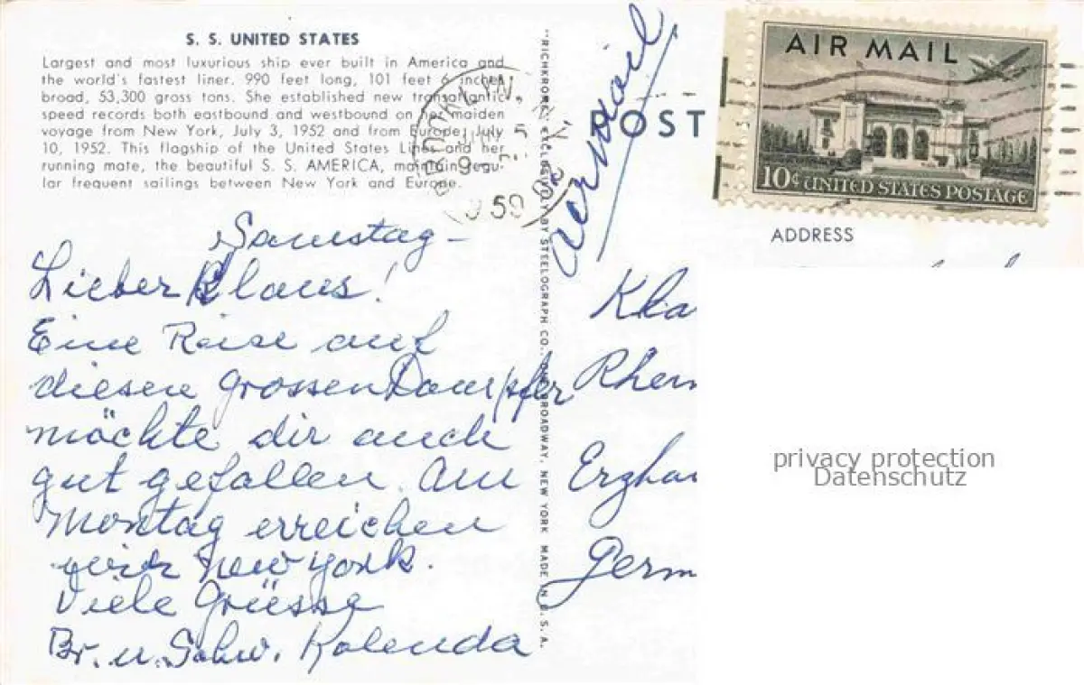 Dampfer Oceanliner United States World's Fastest Liner New York Usa postalisch gelaufen Erhaltung siehe scans [SanaeD93] alte Postkarte Sana Katcode 22480000000700